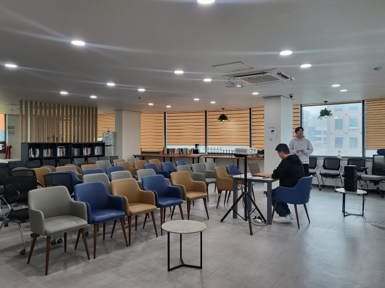저희 컨퍼런스는 2시에 청춘정거장에서 진행하였습니다. 이미 LA에서는 여러 컨퍼런스나 스터디가 진행된 바 있으나, 대전의 데브콘에서는 이전의 사례나 후원이 많이 부족했기 때문에 운영자들과 스태프들의 많은 노력이 필요했습니다. 이전에 몇 차례의 오프라인/온라인 회의를 통해 포스터 제작, 홍보 등을 진행했고, 컨퍼런스 당일에도 일찍 도착하여 리허설을 진행하는 시간을 가졌습니다.