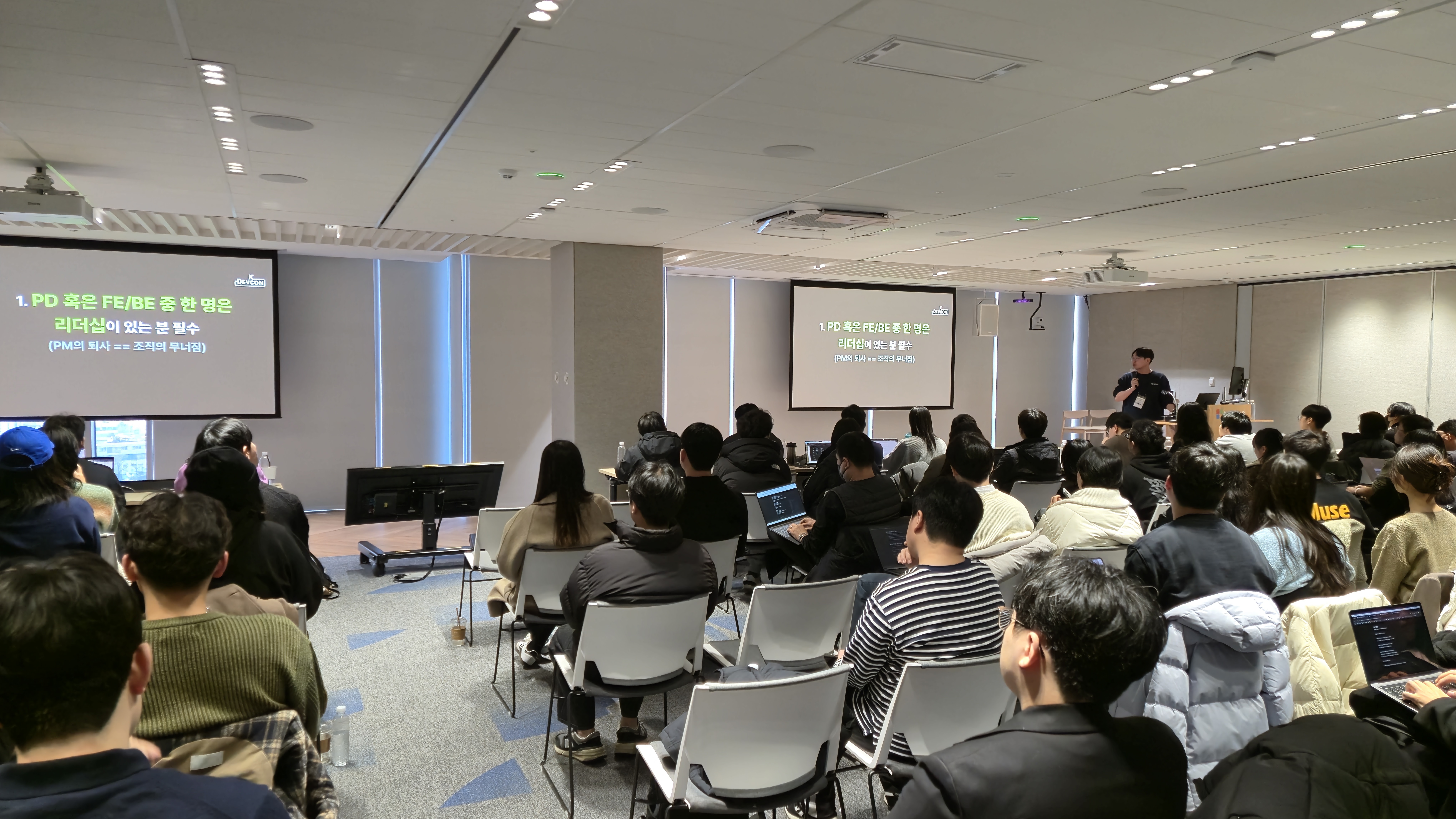 2월 밋업의 테마는 입춘, 봄의 시작과 설레임을 담은 "DevBloom"입니다. "Dev(개발)"의 "Bloom(꽃이 피다)"의 의미를 담은 이번 DevBloom 행사는 최신 IT 개발 지식뿐만 아니라, IT 업계 종사자들에게 실질적으로 도움이 될 다양한 주제를 함께 다루게 되었습니다. 특히 디자인, 부동산 상식 등 다채로운 인사이트를 제공하고 싶다는 운영진들의 바람을 담아, 디자인 세션과 비개발 세션을 넣으니 밋업이 단순히 개발지식만 다루는 것이 아니라, IT 전반의 폭넓은 시각과 실질적인 정보를 얻을 수 있는 기회를 제공한 것 같아 뿌듯했습니다.