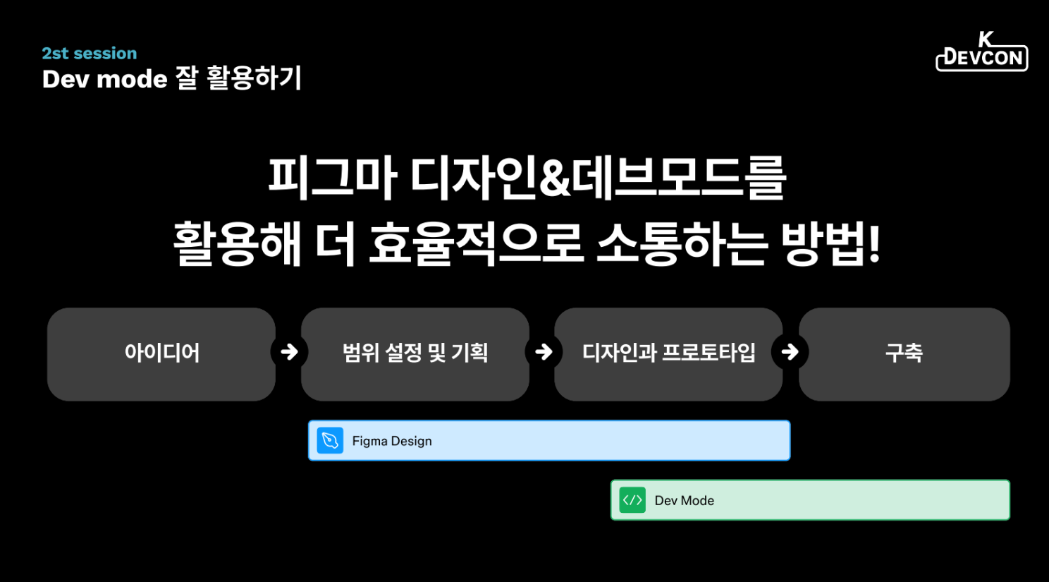 디자이너도 협업할 때 어떤 방식으로 효율화할 수 있을까요? 첫째, 비디자이너들이 어려워할만한 포인트 짚어내고 구조화를 잘하는 것. 둘째, 효율적인 가이드화 방법 활용하기 플러그인/위젯을 적극적으로 활용해보라 말씀해주셨어요. 그리고 세번째는 데브모드 기능을 잘