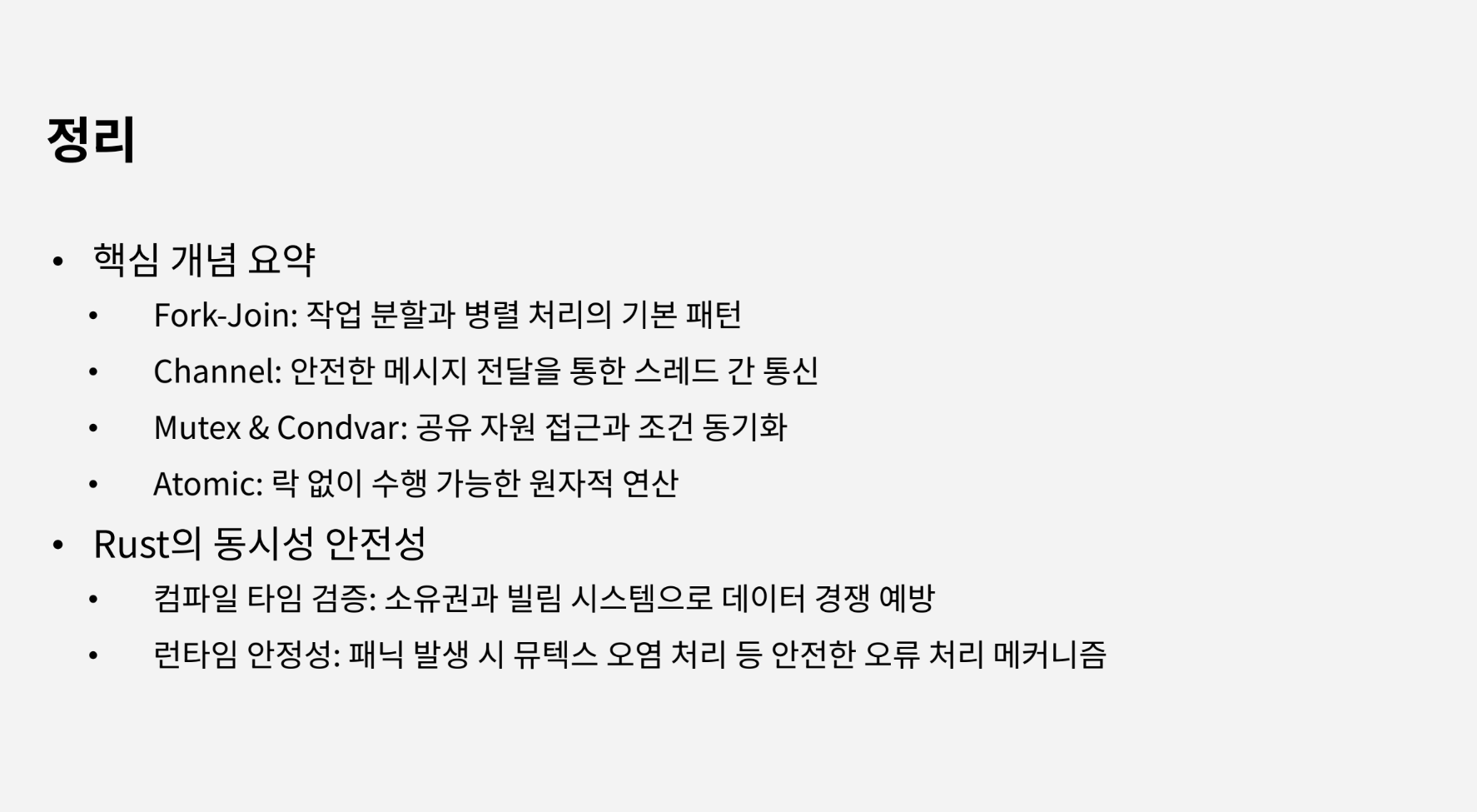세션의 첫 포문은 옥찬호님 (42dot Embedded Software Engineer) 께서 Introduction to Rust Concurrency라는 주제로 시스템 프로그래밍 수업을 Rust를 소개해주셨습니다. Rust의 기본 기능들을 모르면 코드를 이해하는데 조금 어려울 수도 있었지만, Rust 동시성은 이렇게 사용하는구나 정도로 많은 분들이 참여해주셨습니다.