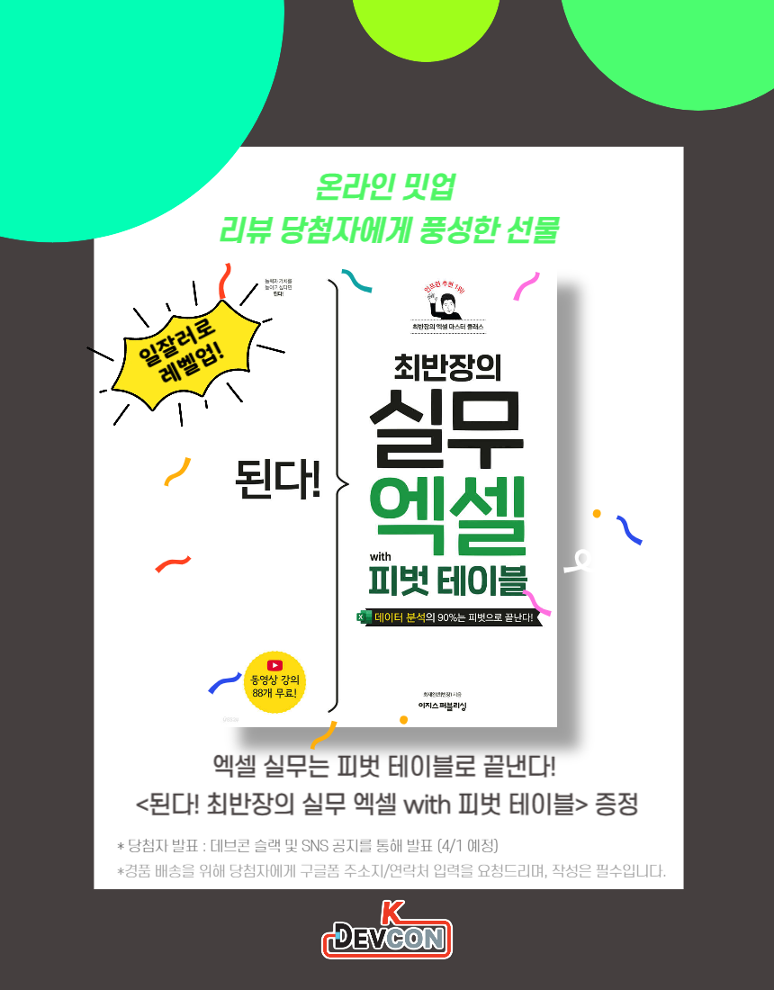 📌당첨자 선물 : <된다! 최반장의 실무 엑셀 with 피벗 테이블> 1권씩 증정 (총 3명)