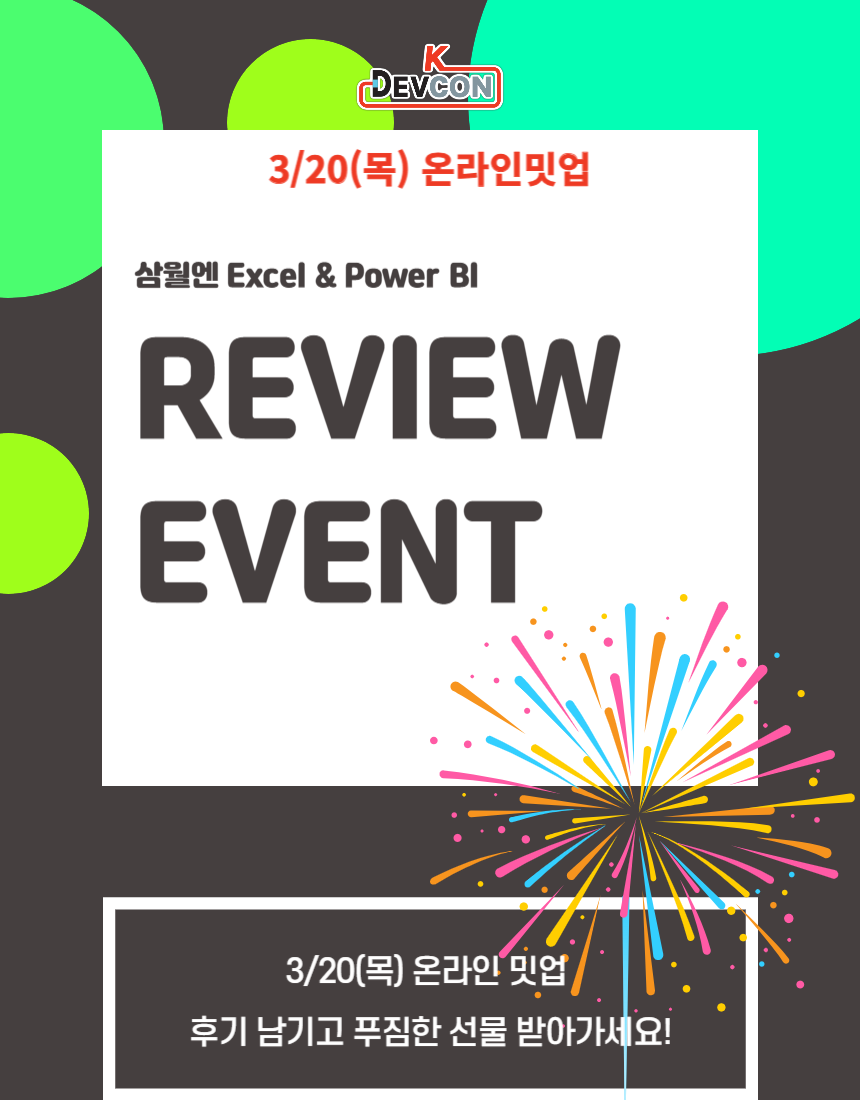 | [Event] 2025-03-20 데브콘 온라인 밋업 : 삼월엔 Excel & Power BI 자동화 (0) | 2025.03.10 |