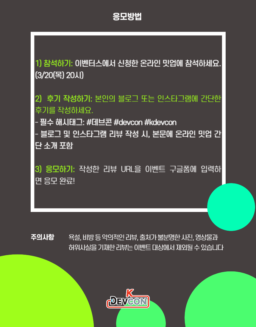 - 필수 해시태그: #데브콘 #devcon #kdevcon