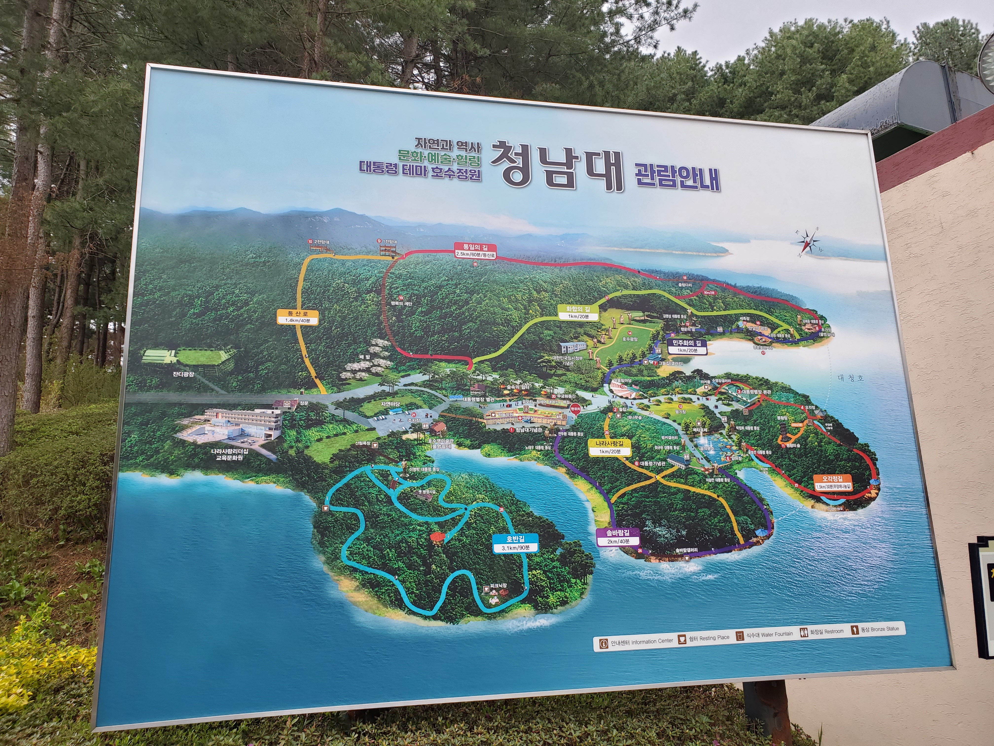 - 역대 대통령 길 걷기: 각 대통령의 이름이 붙은 산책로가 조성되어 있어요. 주변 경치가 너무 평화롭고 멋졌어요.