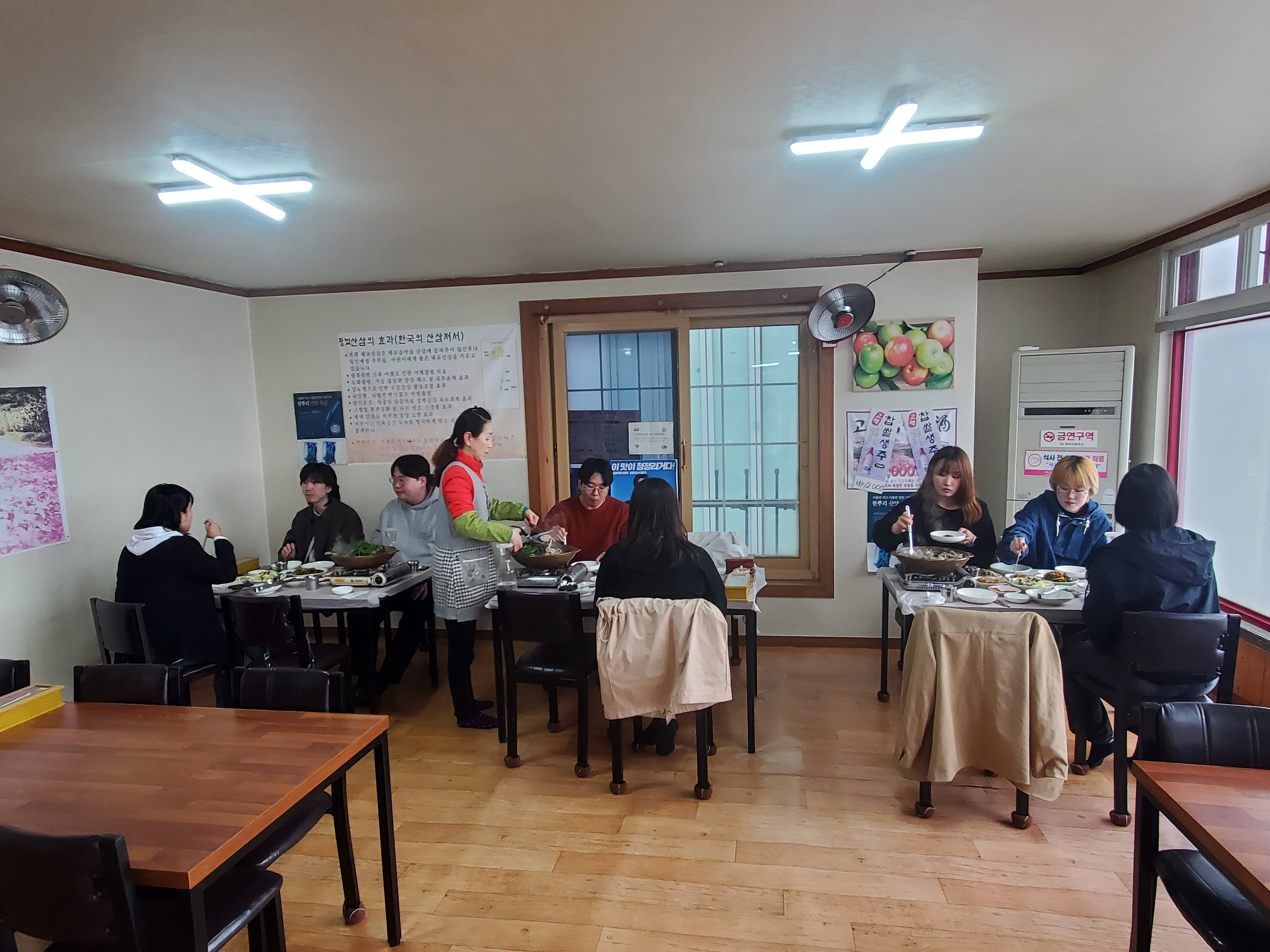 청남대 관람을 마친 후, 대청댐 인근의 '역발산’이라는 식당으로 이동해 능이오리백숙으로 늦은 점심을 먹었어요. 오랜 산책 끝에 출출했던 배를 따뜻하고 진한 국물이 제대로 채워줬고, 정갈하게 차려진 반찬들과 함께 정말 푸짐하게 먹었습니다. 맨 마지막에 나온 죽은 신의 한수였어요! 이야기꽃은 식사 시간에도 계속 이어졌고, 자연스럽게 운영진 각자 개인의 삶과 커뮤니티에 대한 고민도 나누는 의미 있는 시간이었어요.