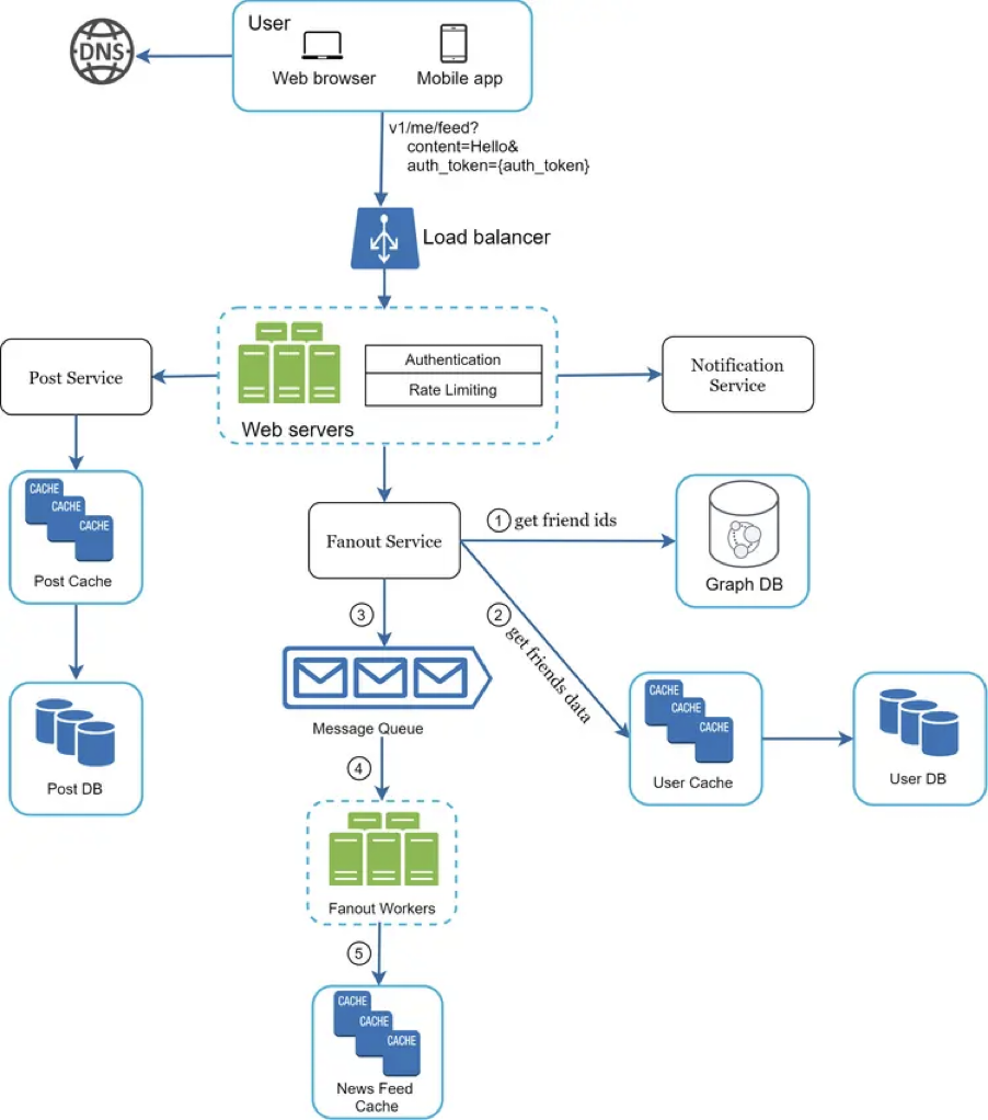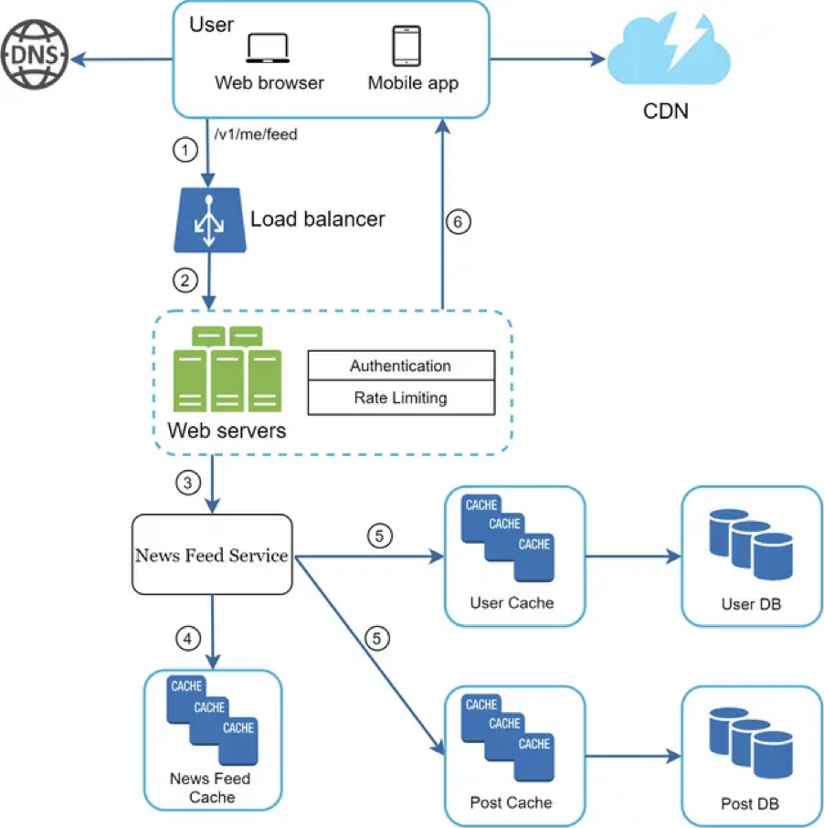 뉴스피드는 홈 페이지에 지속적으로 업데이트 되는 스토리들입니다. 사용자 정보 업데이트, 사진, 비디오, 링크, 앱 활동, 팔로우, 페이지, 좋아요 등 다양한 정보가 포함됩니다. 뉴스피드 시스템 설계는 유명한 면접 문제 중 하나입니다.
