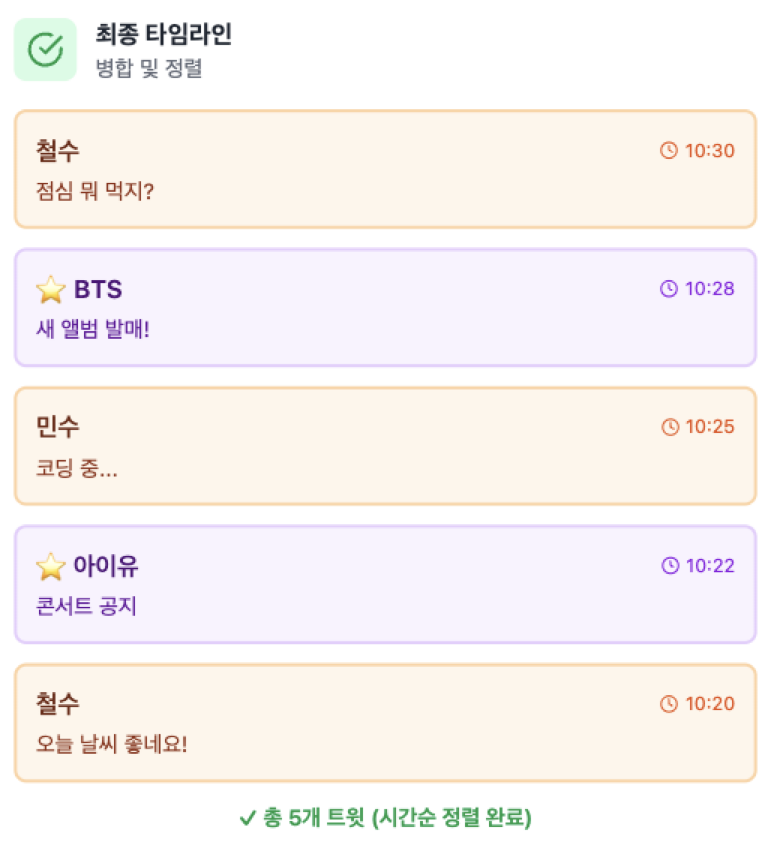3단계: 팔로우 중인 유명인들의 최근 트윗을 실시간으로 조회합니다