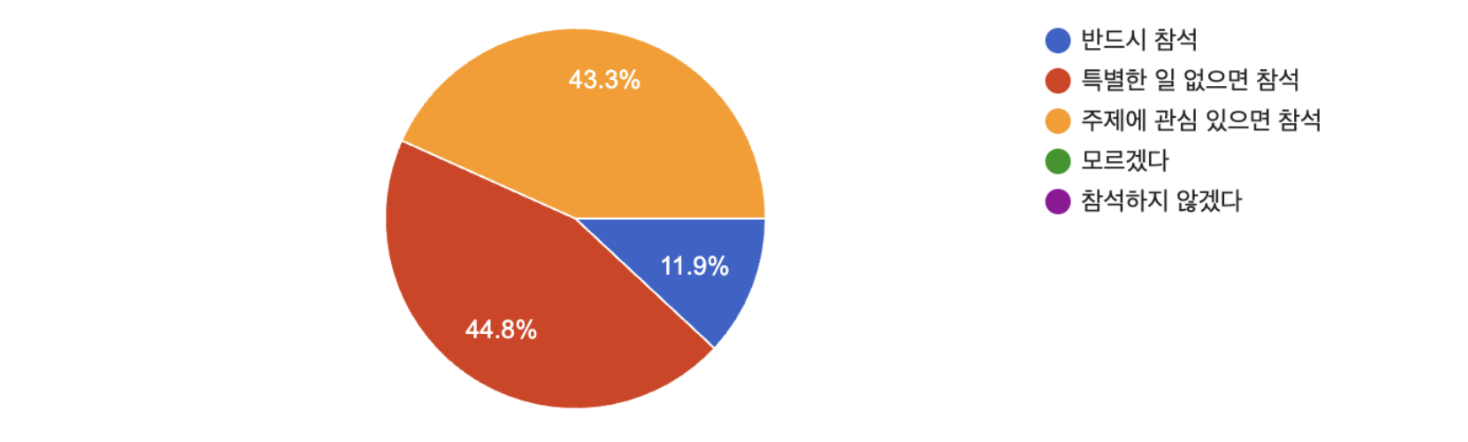 - 참석자의 절반 이상이 사후 설문에 참여, 이들이 단순 방문객이 아니라 커뮤니티 피드백에 참여하는 이용자층이 형성되어 있음을 보여줌.