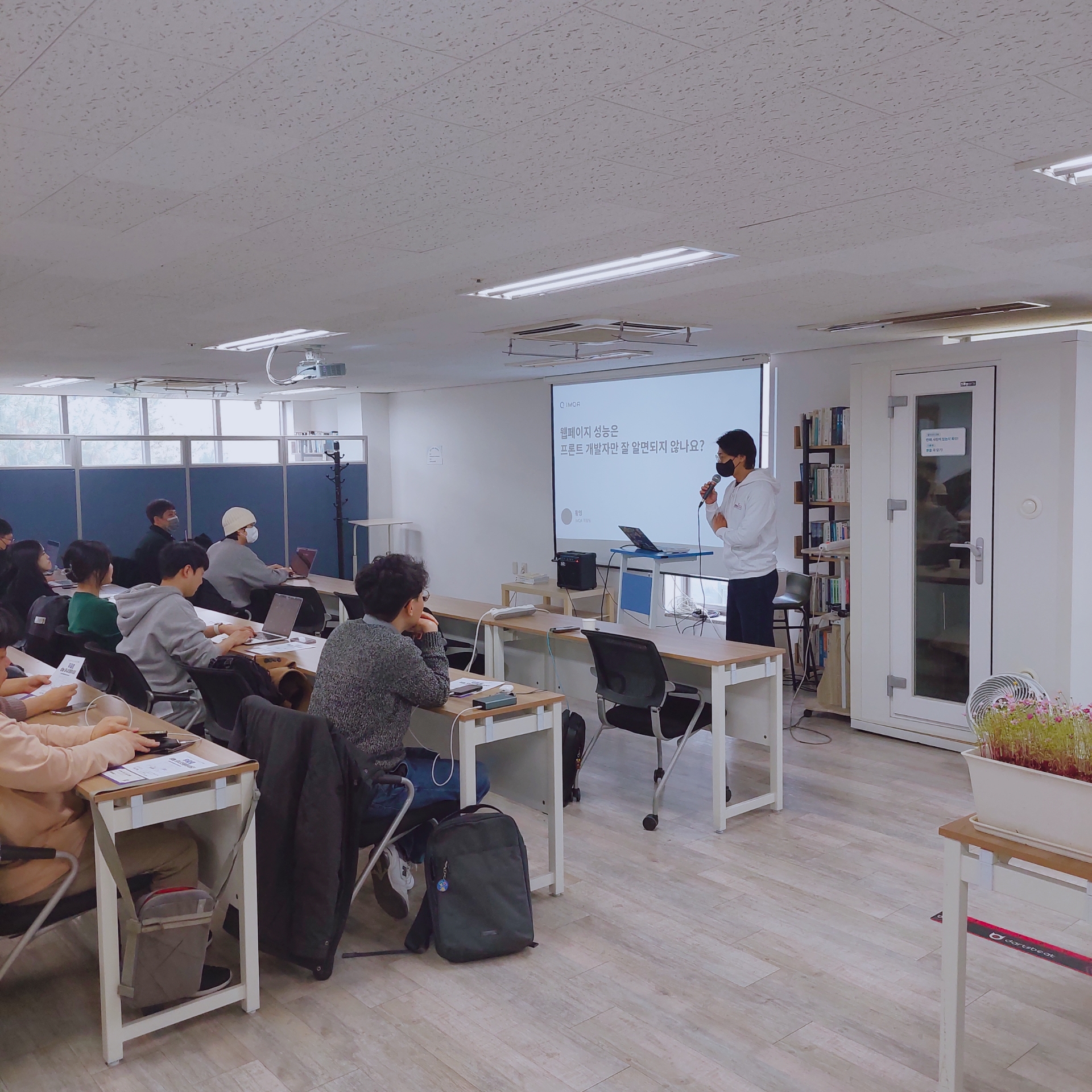 첫 번째 발표는 IMQA에서 백엔드 엔지니어로 활동하고 있는 “황영”님께서 “웹페이지 성능은 프런트 개발자가 잘하면 되지 않나요?”라는 주제로 진행하였습니다.