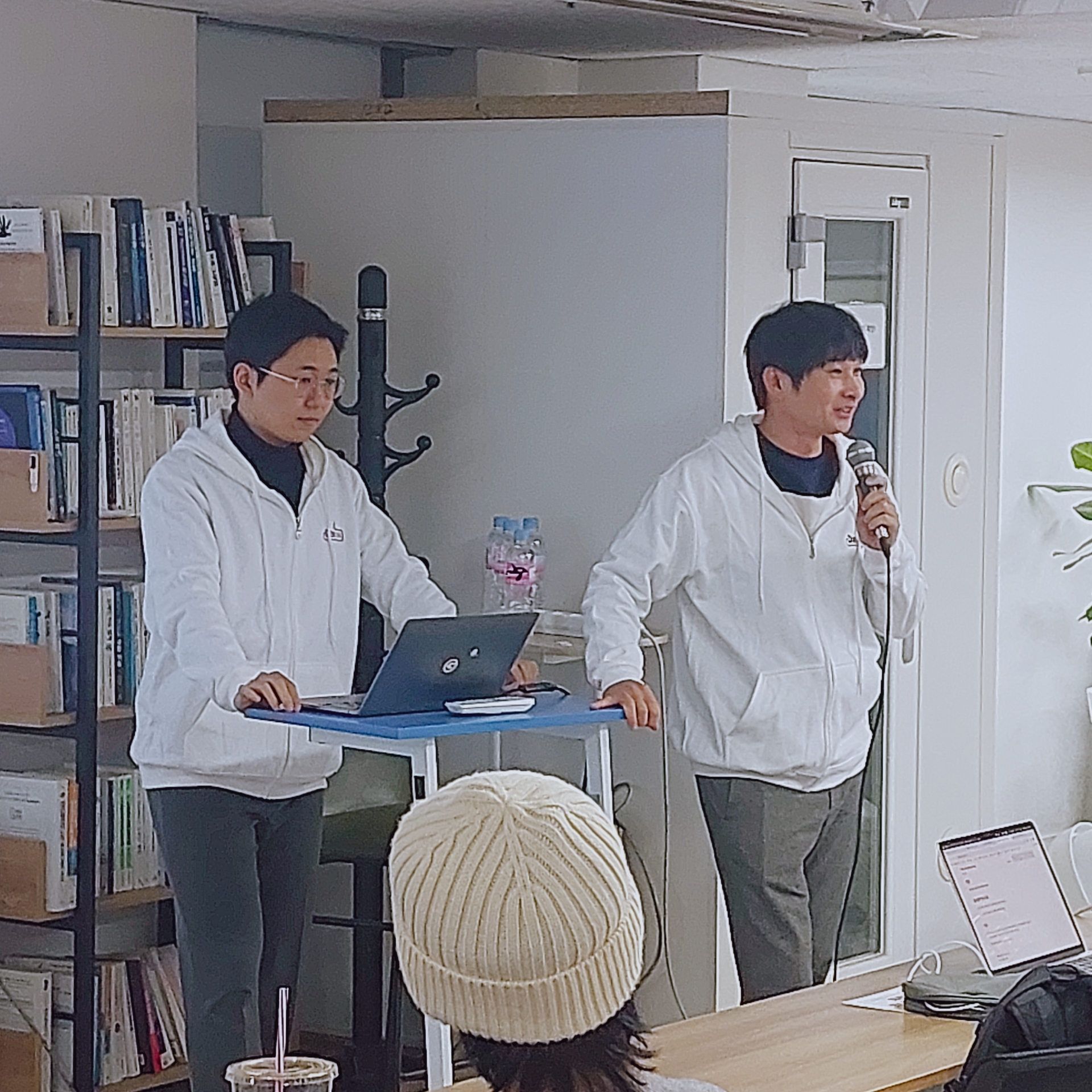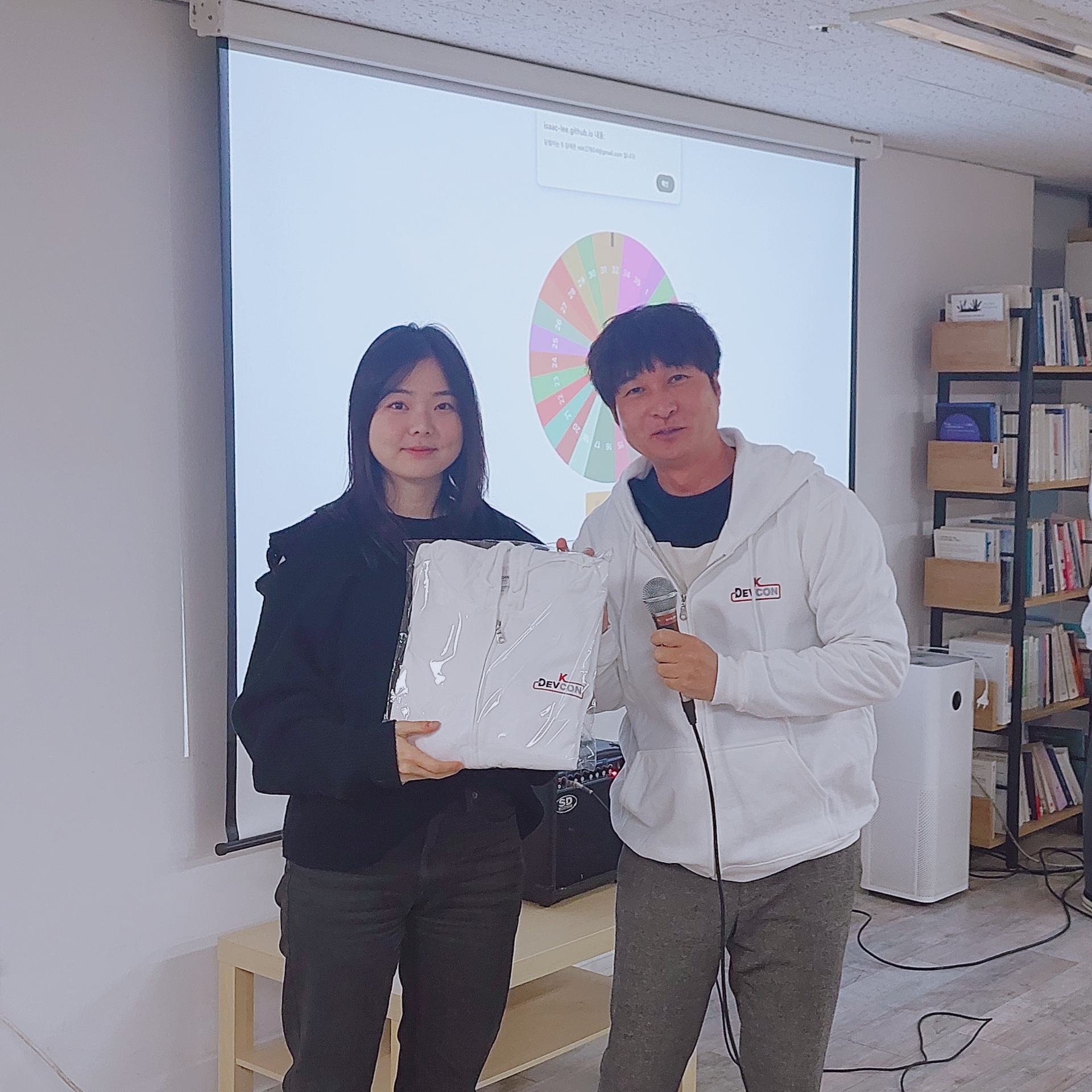 모든 발표가 완료되고, 경품 추첨의 시간이 되었습니다. 어떠한 밋업이든 가장 마지막이 설레는 법인데, 아무래도 경품 때문이지 않을까 합니다. 경품 추첨 진행에는 강성욱, 이예성님께서 진행해주셨습니다.