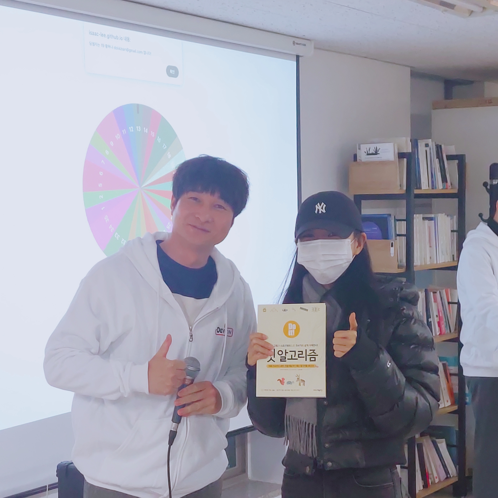 해당 코드는 데브콘 대전 챕터에서 Univ 멘토링을 전담하고 계신 이예성 대전 운영진분이 작성한것으로 언제든지 버그바운티를 환영한다고 합니다. 그래서 추첨에도 이예성님께서 직접 추첨기를 작동해주셨습니다.