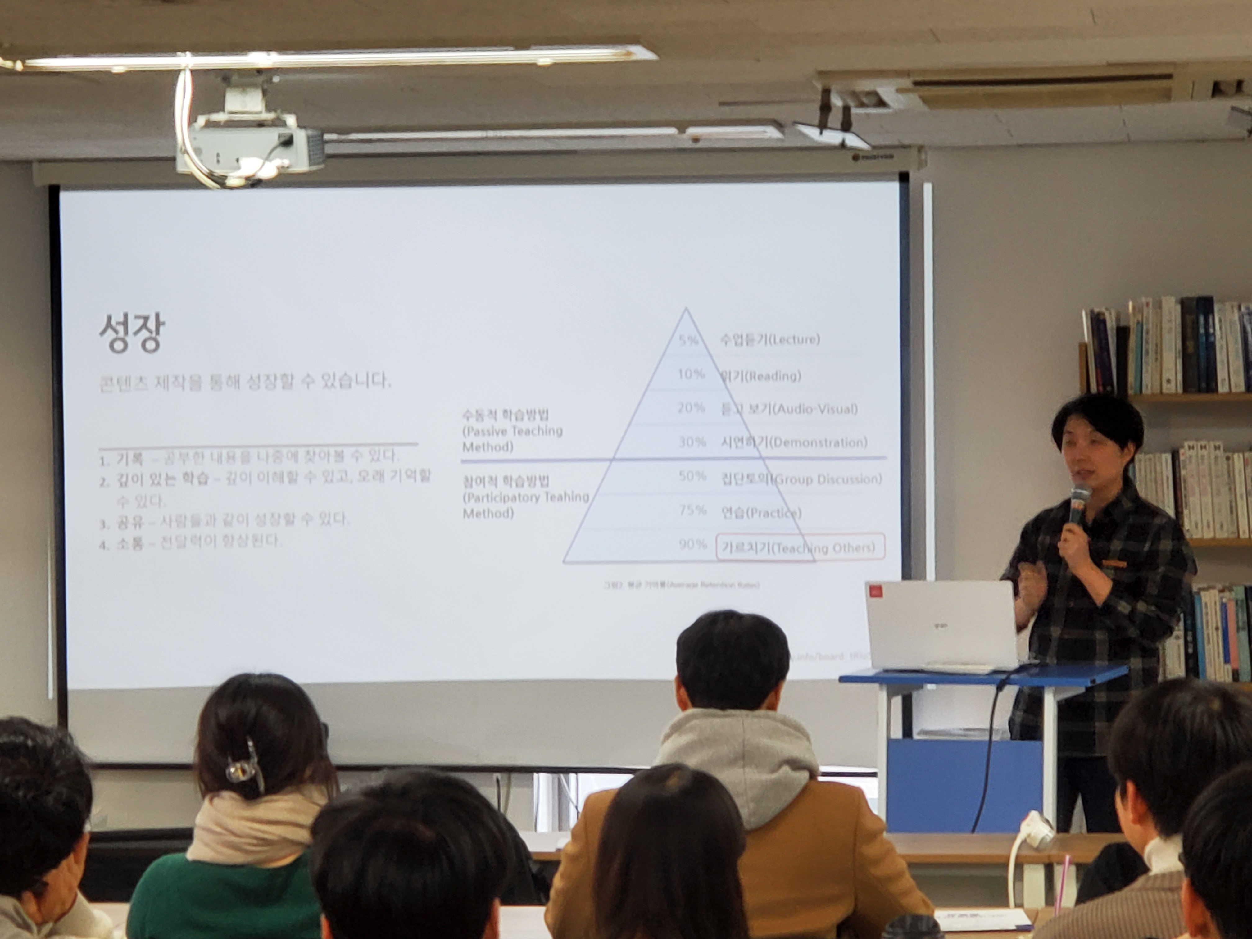 블로그를 작성하거나 영상을 작성할 때 목표가 중요하다고 강조하시면서, 성장에 대한 목표가 있다면 “가장 좋은 공부는 가르치는 것”을 강조하시며, 알고 있는 지식을 잘 전달하여 스스로 성장하는 것이 중요하다고 하였습니다.