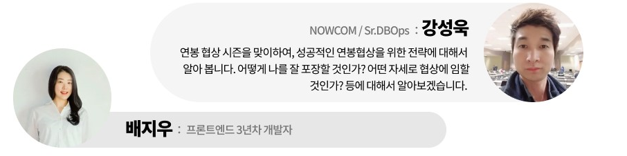 성욱님은 수많은 회사를 거쳐가며 쌓인 연봉 협상에 대한 경험과 노하우를 오늘 이 자리에서 전해드리고자 하셨는데요.