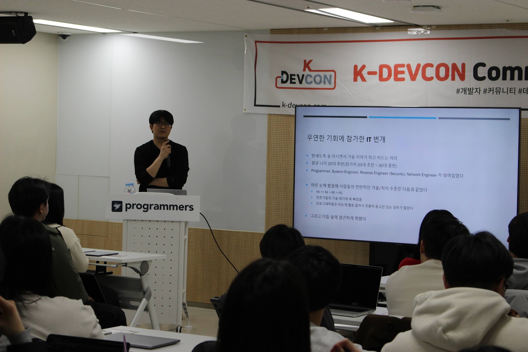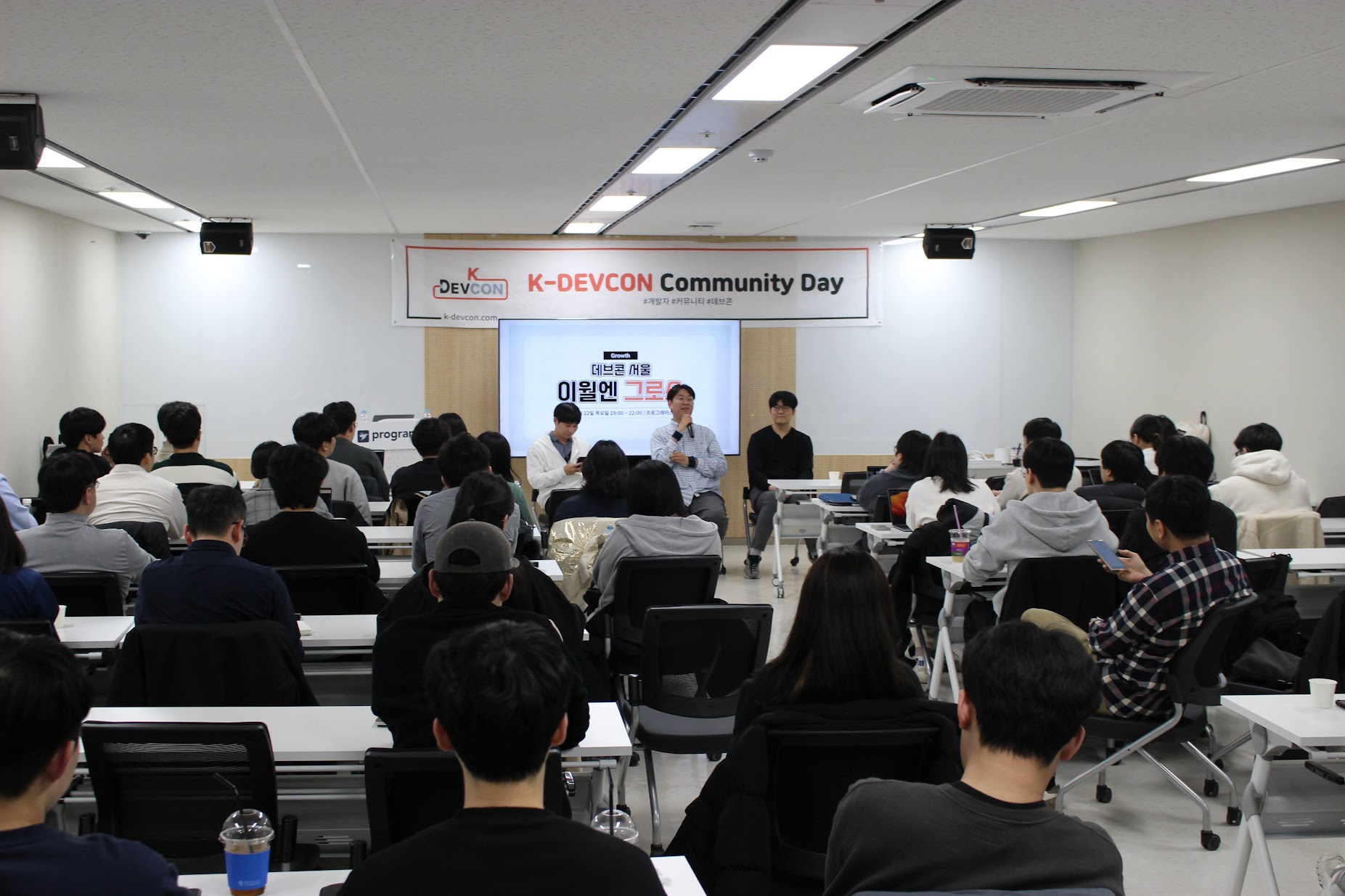 안녕하세요 K-DEVCON(k-devcon.com) 입니다. 지난 포스팅에 이어 오늘도 지난 2월 22일(목) 19시 ~ 22시 서울 강남역 2번출구 프로그래머스 강남 교육장 에서 열린 <데브콘 서울 : 이월엔 그로스> 2부 스토리를 시작합니다.