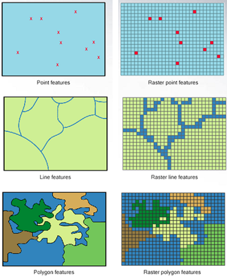 GIS 데이터 표현 방식에는 벡터와 레스터 두 가지 형태가 있다고 합니다.