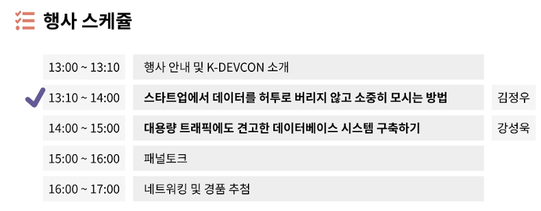 여기까지 <데브콘 대전 : 삼월엔 데이터!> 행사 1부에 대한 이야기를 적어보았습니다.