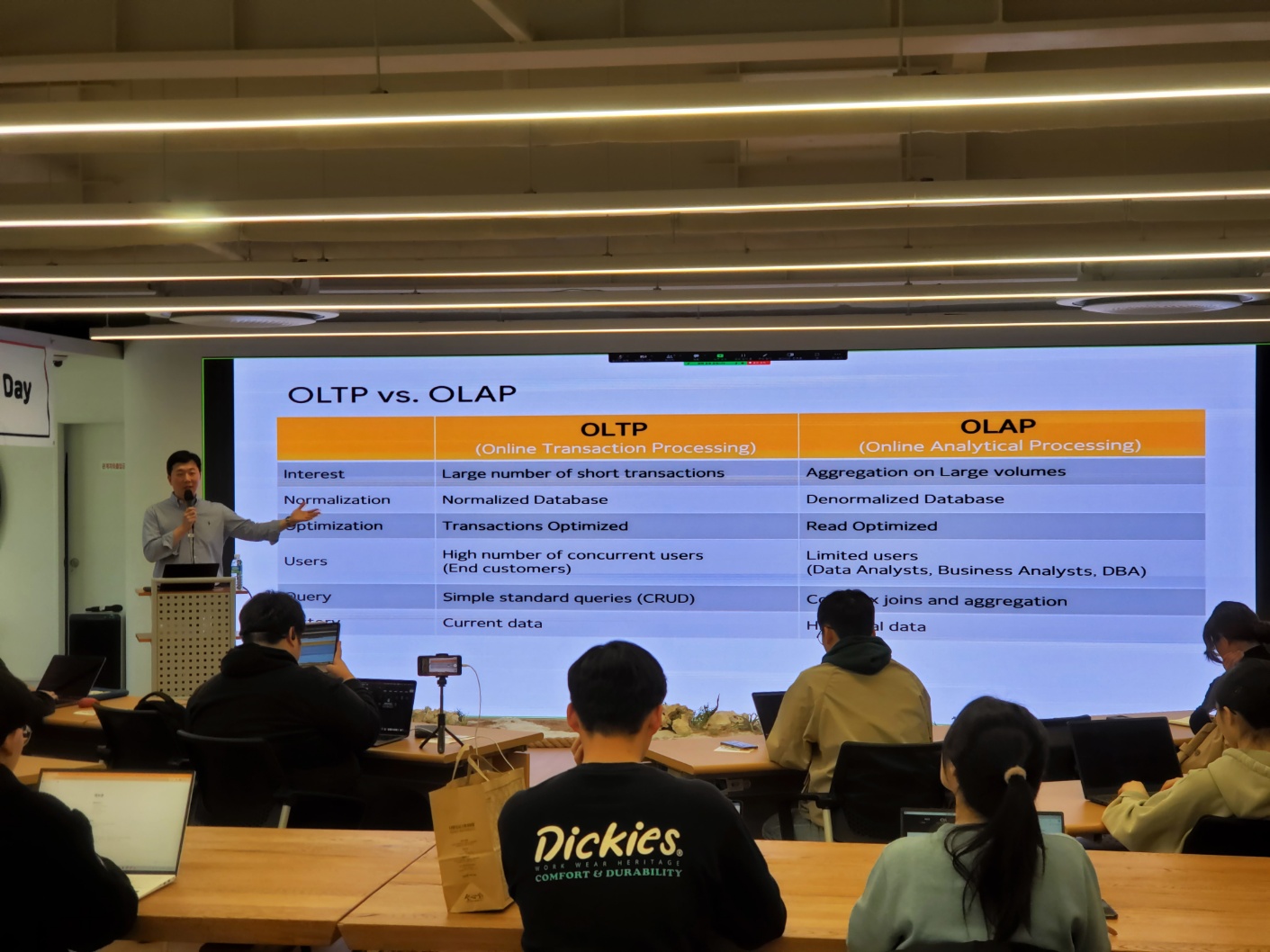 다음으로 정우님은 온라인 상에서 데이터를 처리하는 시스템에 대하여 말씀해주셨는데요. OLTP과 OLAP 두 가지 유형이 존재한다고 합니다.