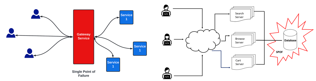 (출처:https://akfpartners.com/growth-blog/single-points-of-failure-never-trust-and-always-void, https://medium.com/@interviewready/single-point-of-failure-591f853ee5aa )