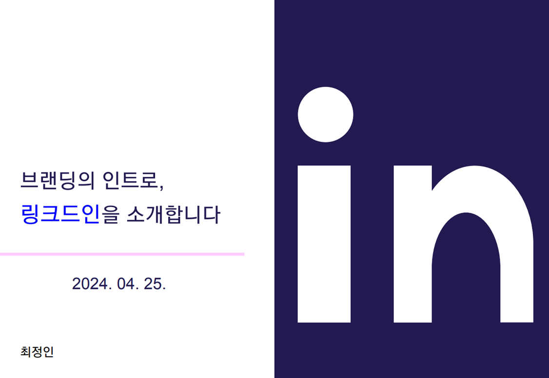 1부 세션은 최정인님께서 "브랜딩의 인트로, 링크드인을 소개합니다."라는 주제로 세션을 열어주셨습니다. 한정된 시간안에 전문적인 퍼스널 브랜딩을 논하는 자리라기 보다는 IT 직무자들이 가장 손쉽게 자신의 브랜드를 만들고 관계를 만드는 솔루션, 링크드인을 셋팅하는 방법을 알려주셨습니다.