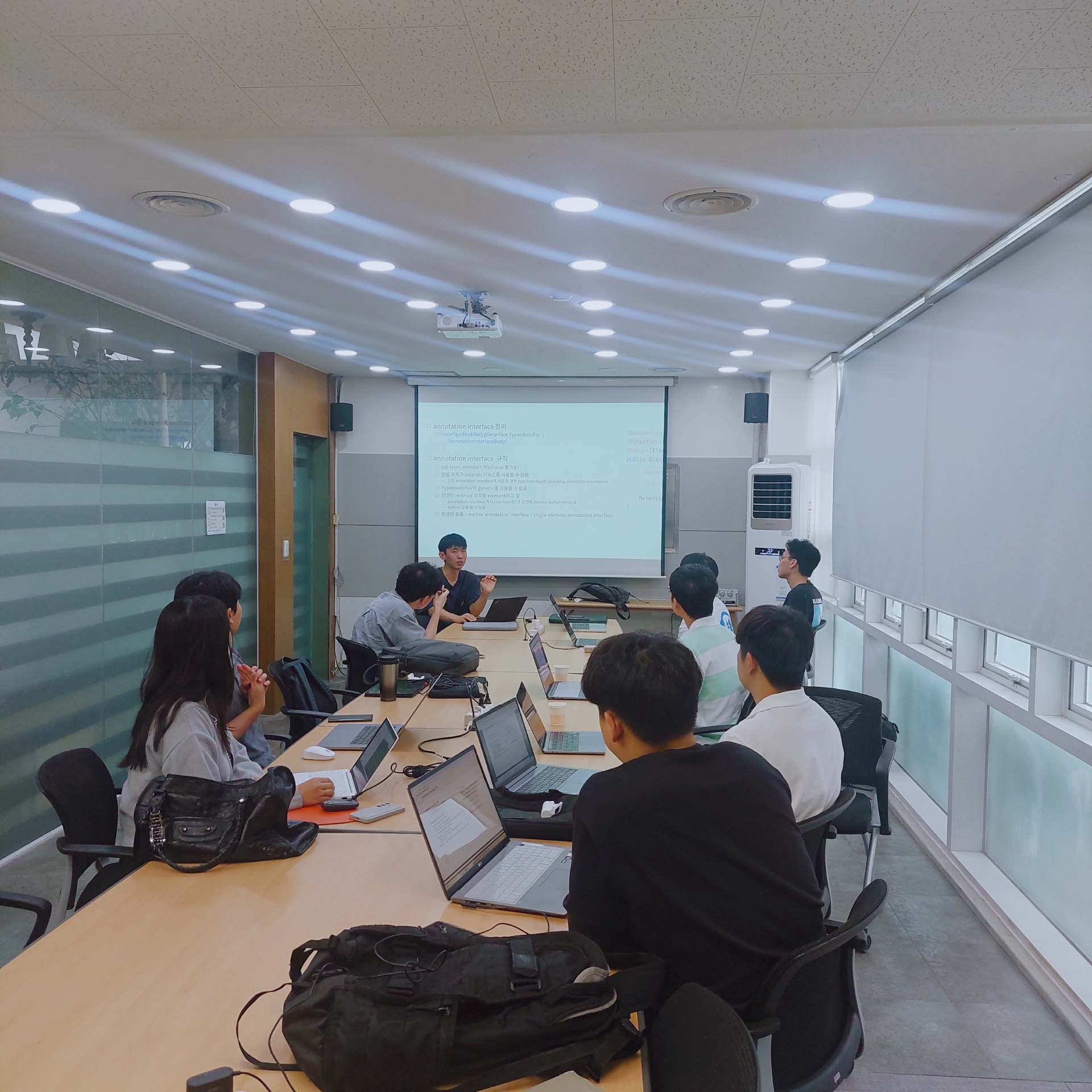 저희는 단순히 진도를 나가는데 목적을 두는 것이 아니라 해당 주제에 대해 서로 공부해 온 것을 기반으로 이야기 하면서 스터디를 진행하고 있습니다. 모르는 부분은 질문하고, 자기가 알던 내용과 다르면 얼마든지 의견을 제시해도 좋습니다. 같이 더 좋은 것을 얻어가기 위해 함께 노력하고 있습니다.