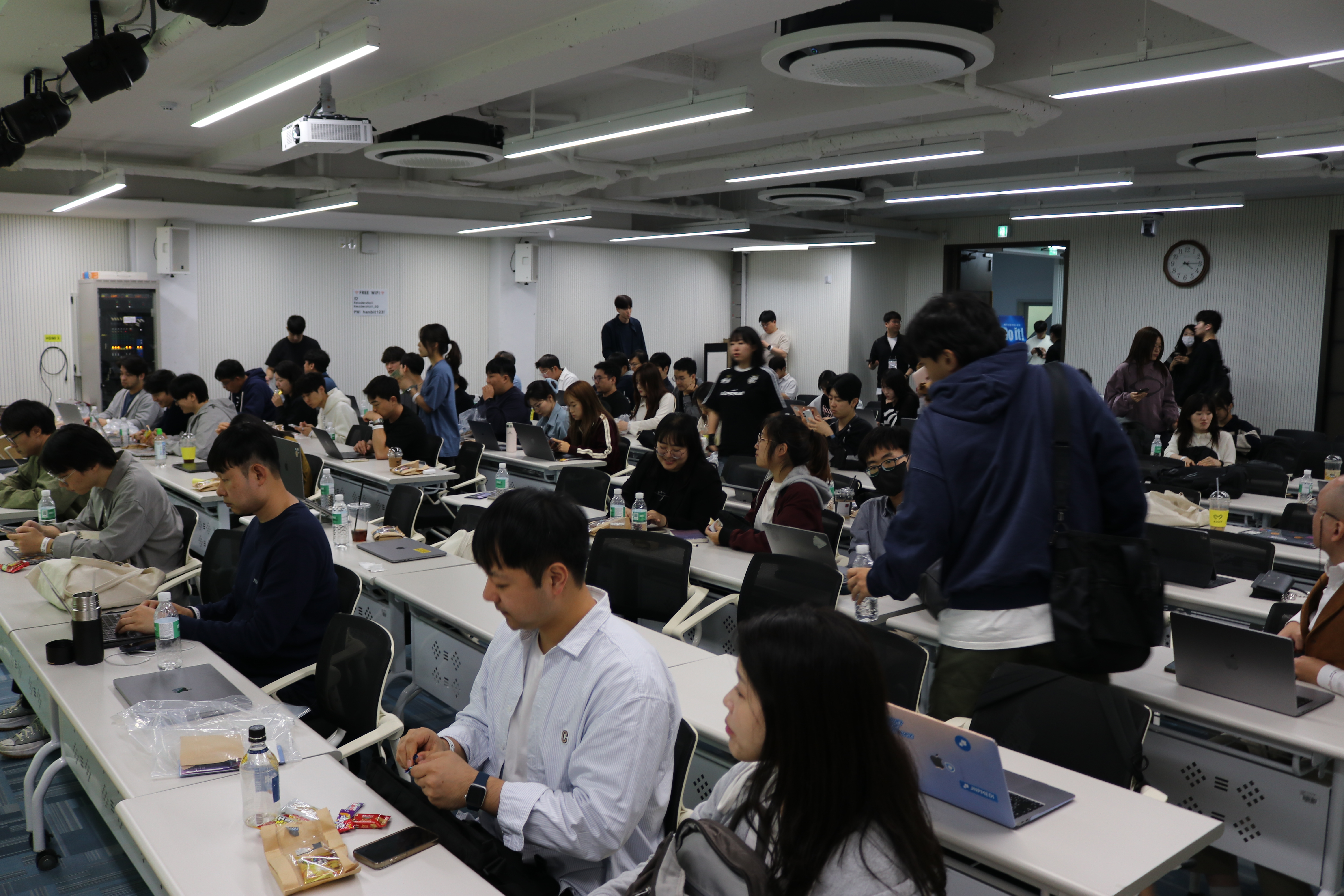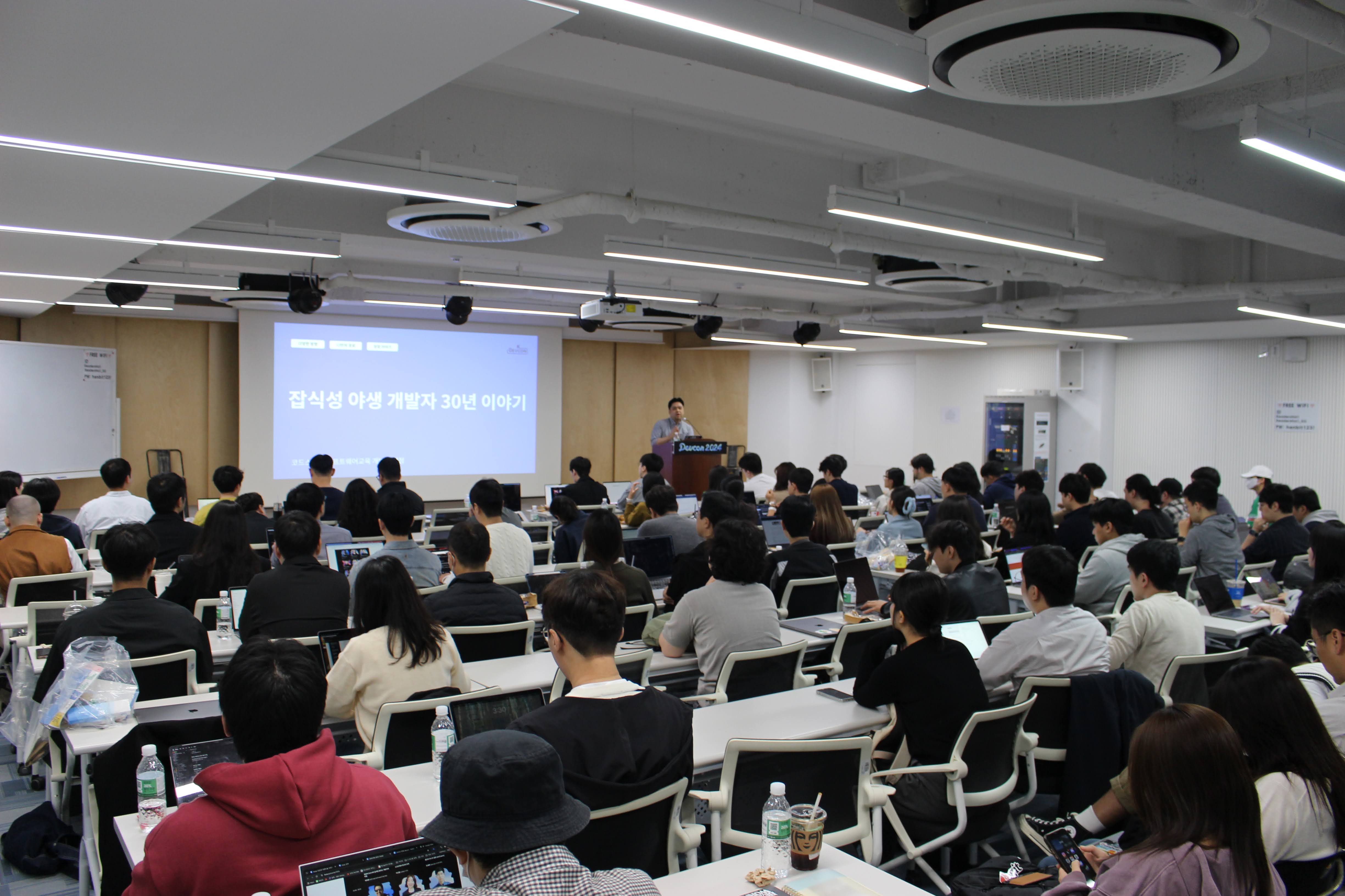 그리고 바로 이어서 많은 분들께서 DEVCON 2024세션 연사자로 나서주셨습니다. 한빛앤 리더스홀이 꽉 차서 입석(?)이 생길 정도로 뜨거운 열기였으며, 행사 내부에 에어컨을 빵빵하게 가동하였지만 행사장의 열기를 이길 순 없을 정도로 많은 분들이 열정이 느껴졌습니다. 진지한 모습의 참가자들의 모습이 지금도 눈에 선하네요.
