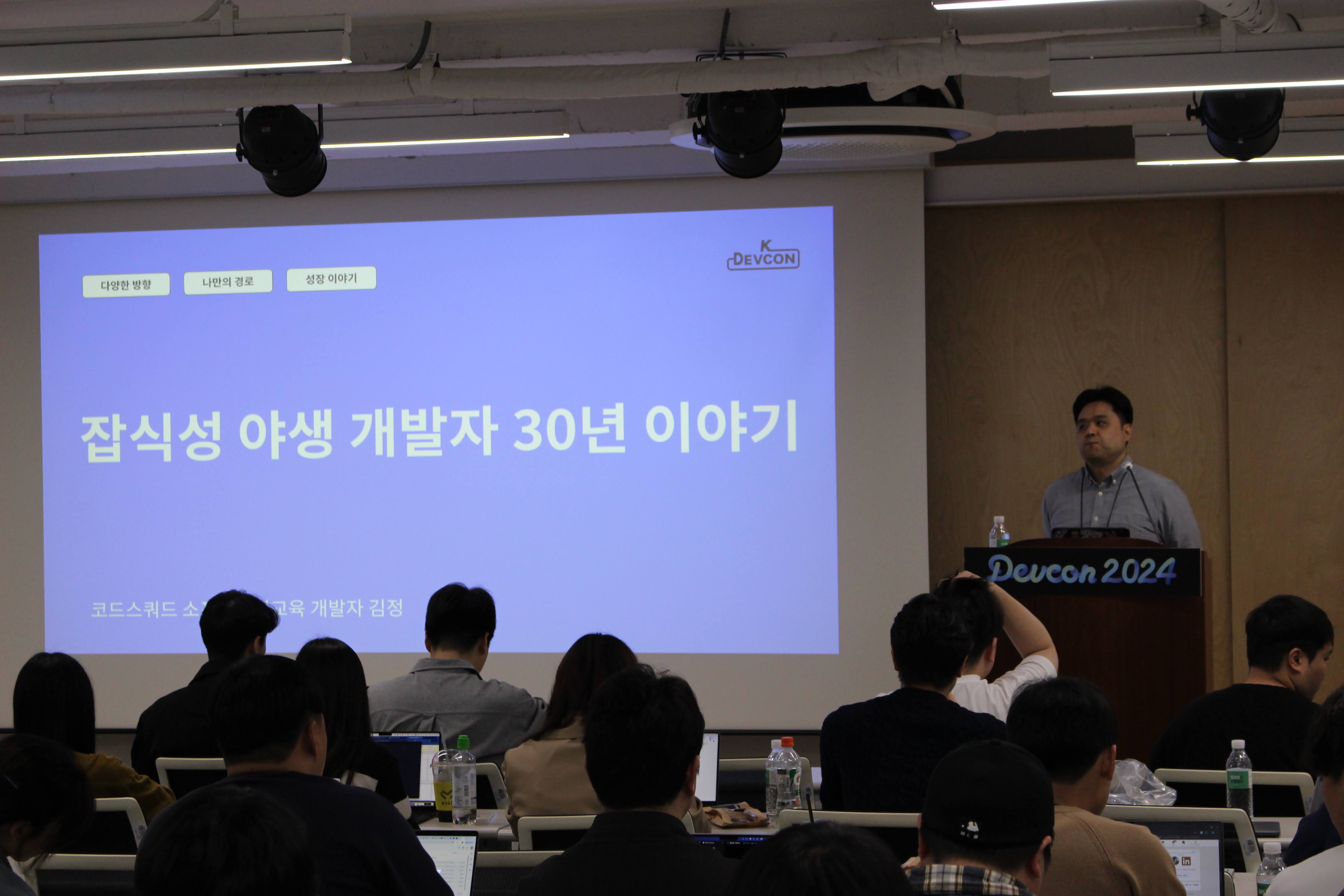 오랜만에 인사드립니다. 지난 12일(토)) K-DEVCON 2024 컨퍼런스가 한빛앤 사옥에서 개최되었습니다. 15여명의 오거나이저, 그리고 이 날 행사의 원활한 진행을 위해 발벗고 지원해준 15여명의 스텝들까지. 많은 분들의 관심과 열정 덕분에 행사가 아무 안전 문제 없이 성황리에 마칠 수 있었습니다.