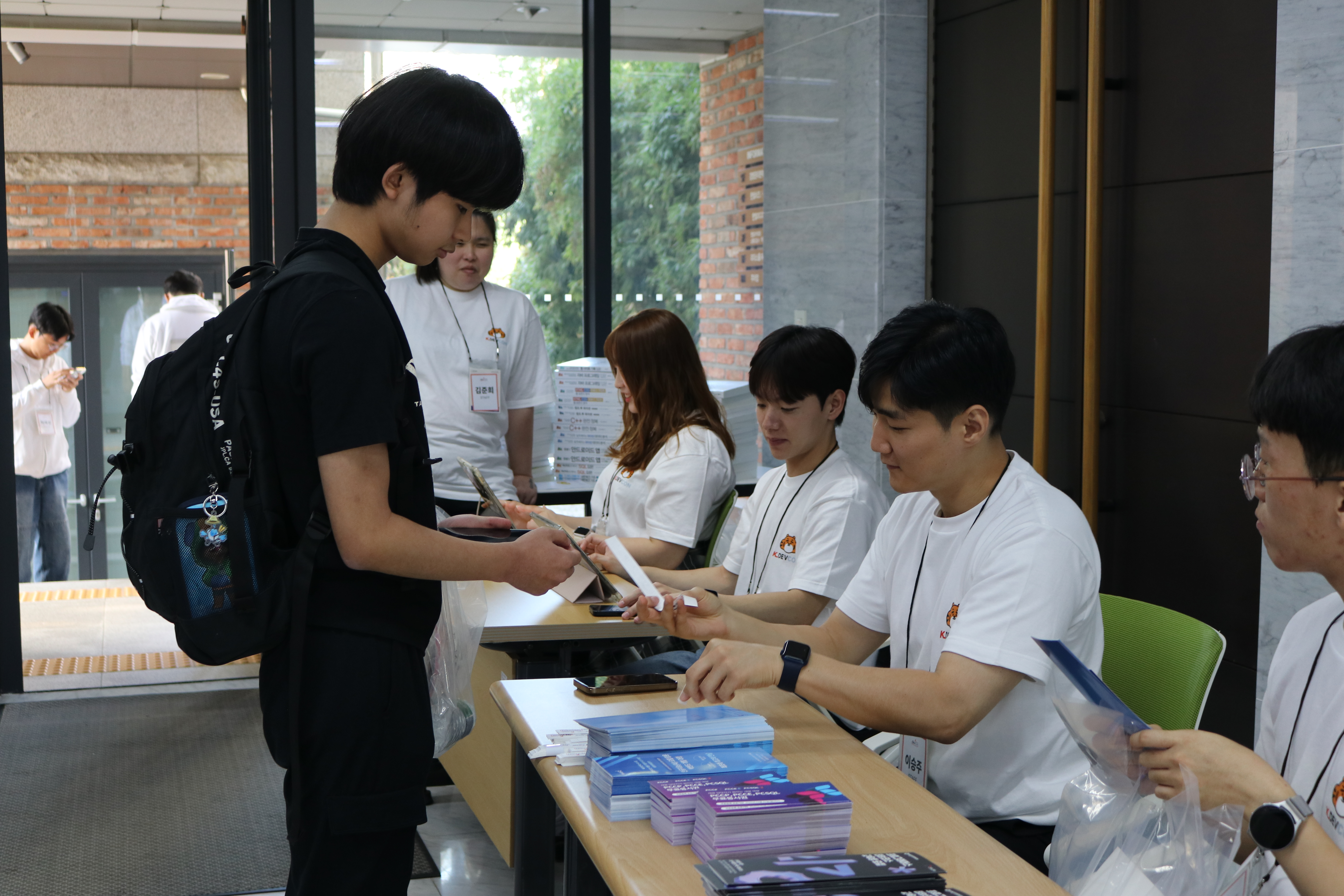 이 날 행사는 티켓 300장이 빠른 시간에 매진될 정도로 엄청난 인기였는데 막상 행사 당일 노쇼가 많지 않을까 걱정되었지만 그것은 기우였습니다. 등록 시작 시간이 가까워지자 큰 줄을 설 정도로 정말 많은 분들이 입장 등록을 위해 모여주셨습니다. 무엇보다 이 날 타임테이블을 보면 과연 이 많은 레전드들을 한번에 볼 수 있다는 기대감에 더 많은 분들이 찾아주신 것 같습니다.