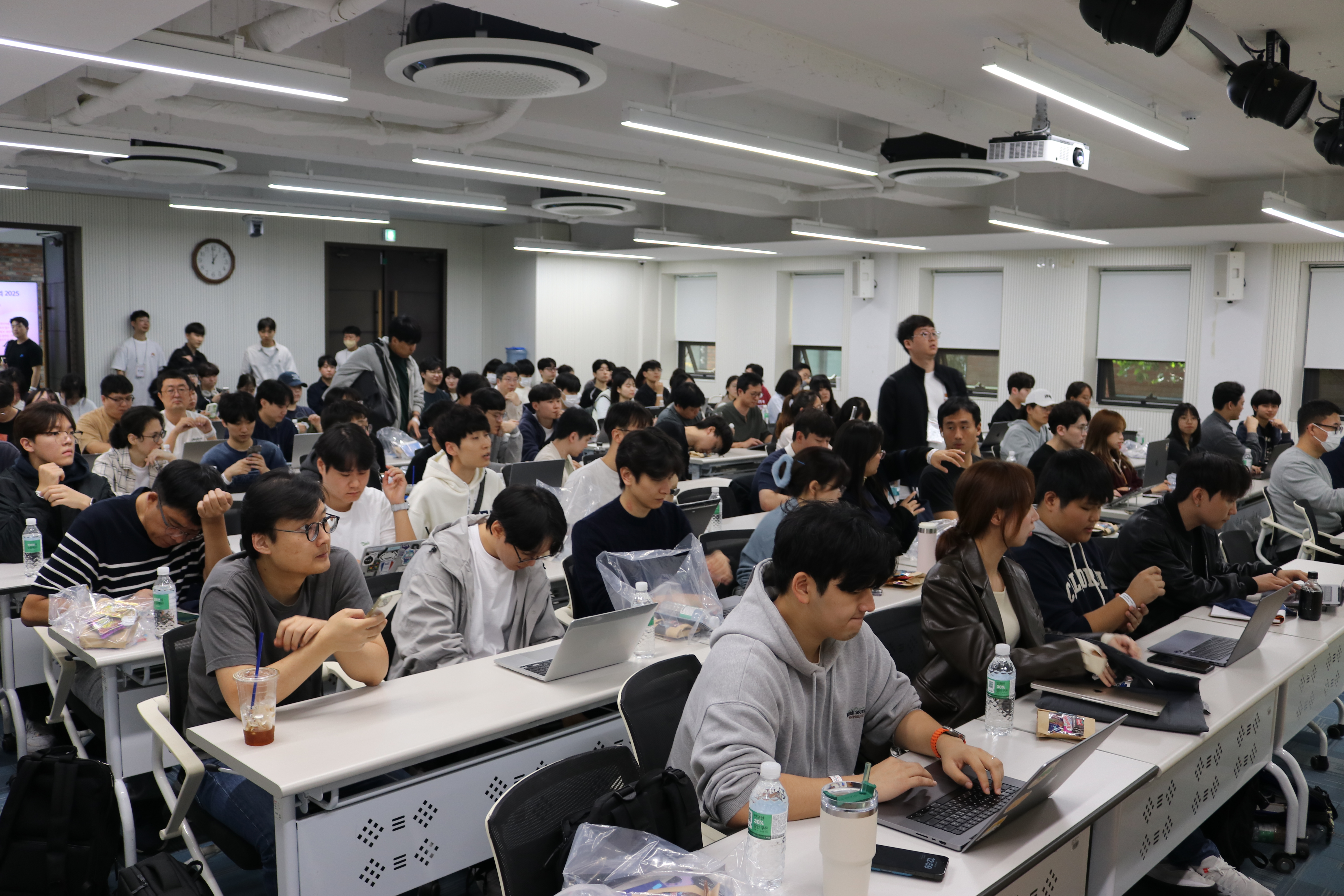 그리고 바로 이어서 많은 분들께서 DEVCON 2024세션 연사자로 나서주셨습니다. 한빛앤 리더스홀이 꽉 차서 입석(?)이 생길 정도로 뜨거운 열기였으며, 행사 내부에 에어컨을 빵빵하게 가동하였지만 행사장의 열기를 이길 순 없을 정도로 많은 분들이 열정이 느껴졌습니다. 진지한 모습의 참가자들의 모습이 지금도 눈에 선하네요.