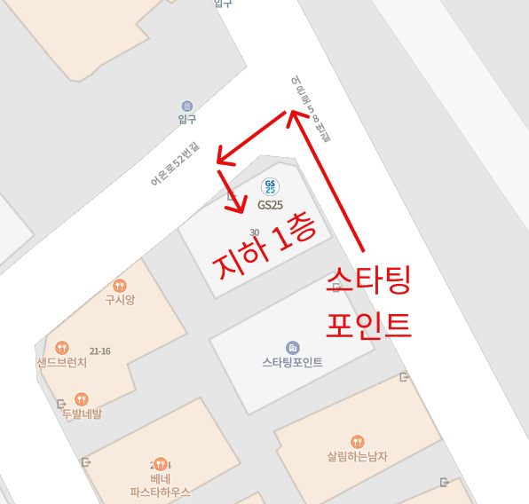* GS 편의점이 있는 건물의 지하 1층입니다