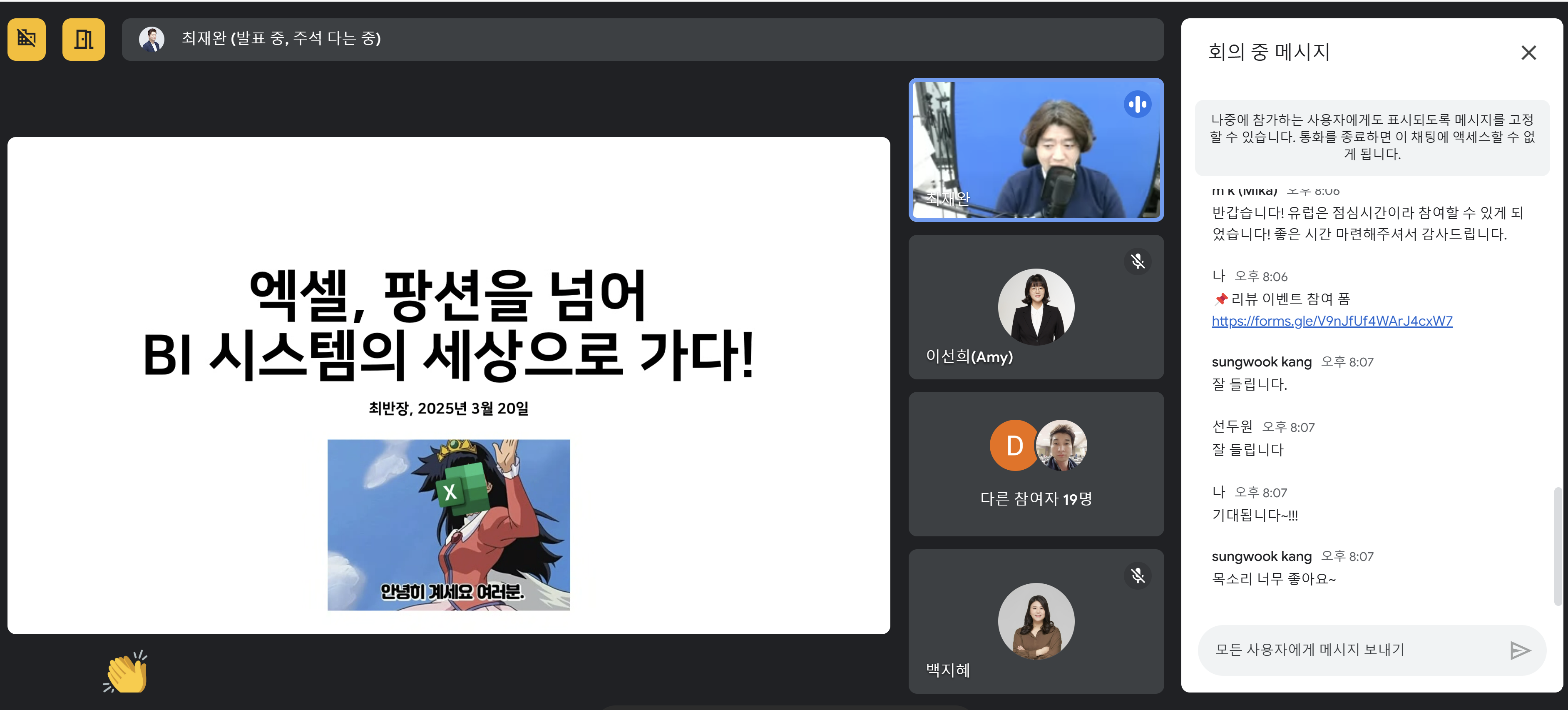 - 일시 : 2025년 3월 20일(목) 20:00~21:00 (1시간)