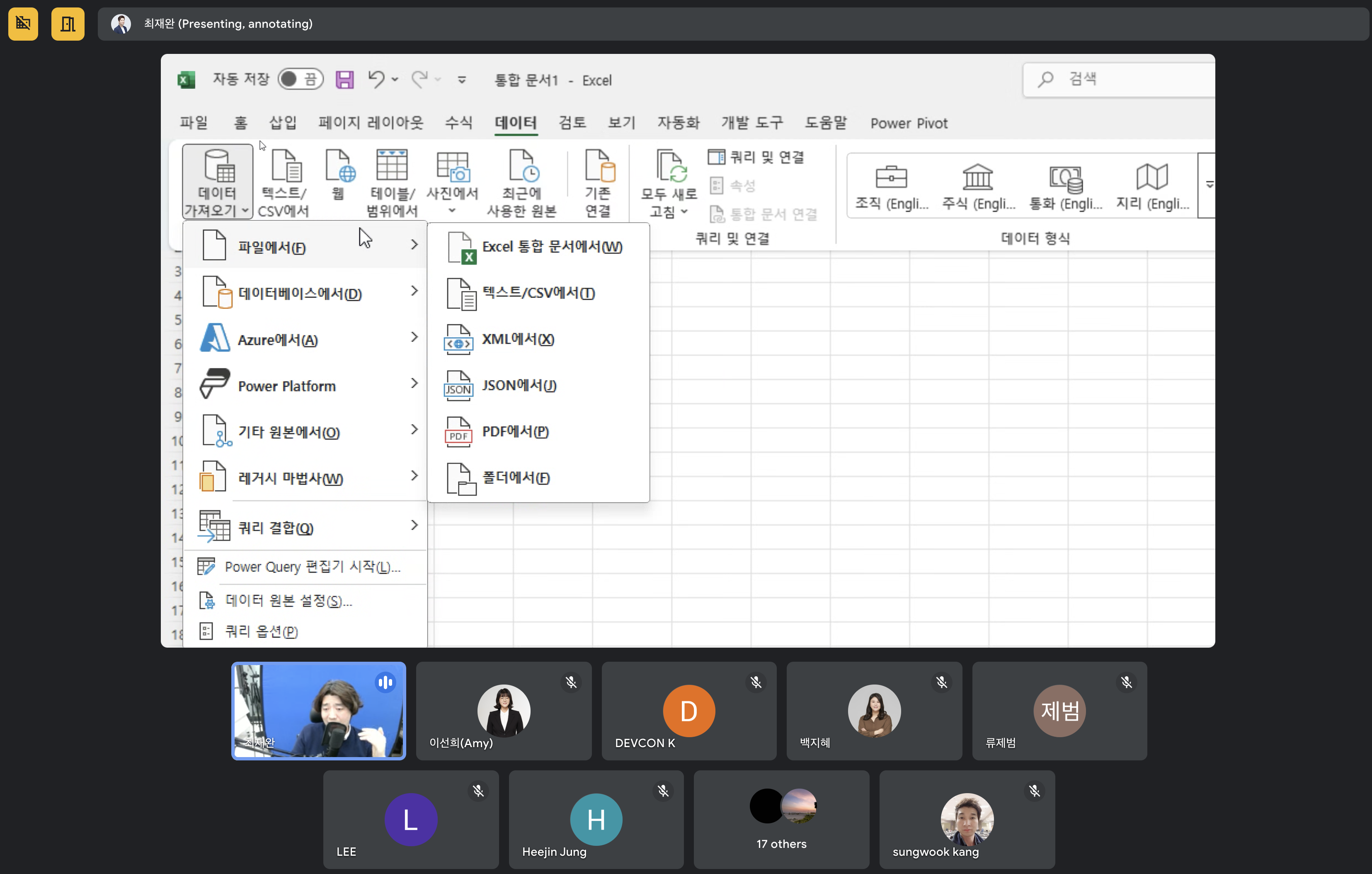 지난 20일(목) 20시 온라인으로 진행한 "삼월엔 Excel & Power BI" 만들기 온라인 특강에서, BI 전문 교육 및 콘텐츠 기업 히크로도스(Hic Rhodus) 를 운영하는 최재완 대표님(필명: 최반장)의 강연, {엑셀, 팡션을 넘어 BI 시스템의 세상으로 가다!} / (부제) 엑셀 파워쿼리와 파워피벗으로 구축하는 데이터 파이프라인과 자동 분석 시스템의 구축을 들을 수 있었습니다.