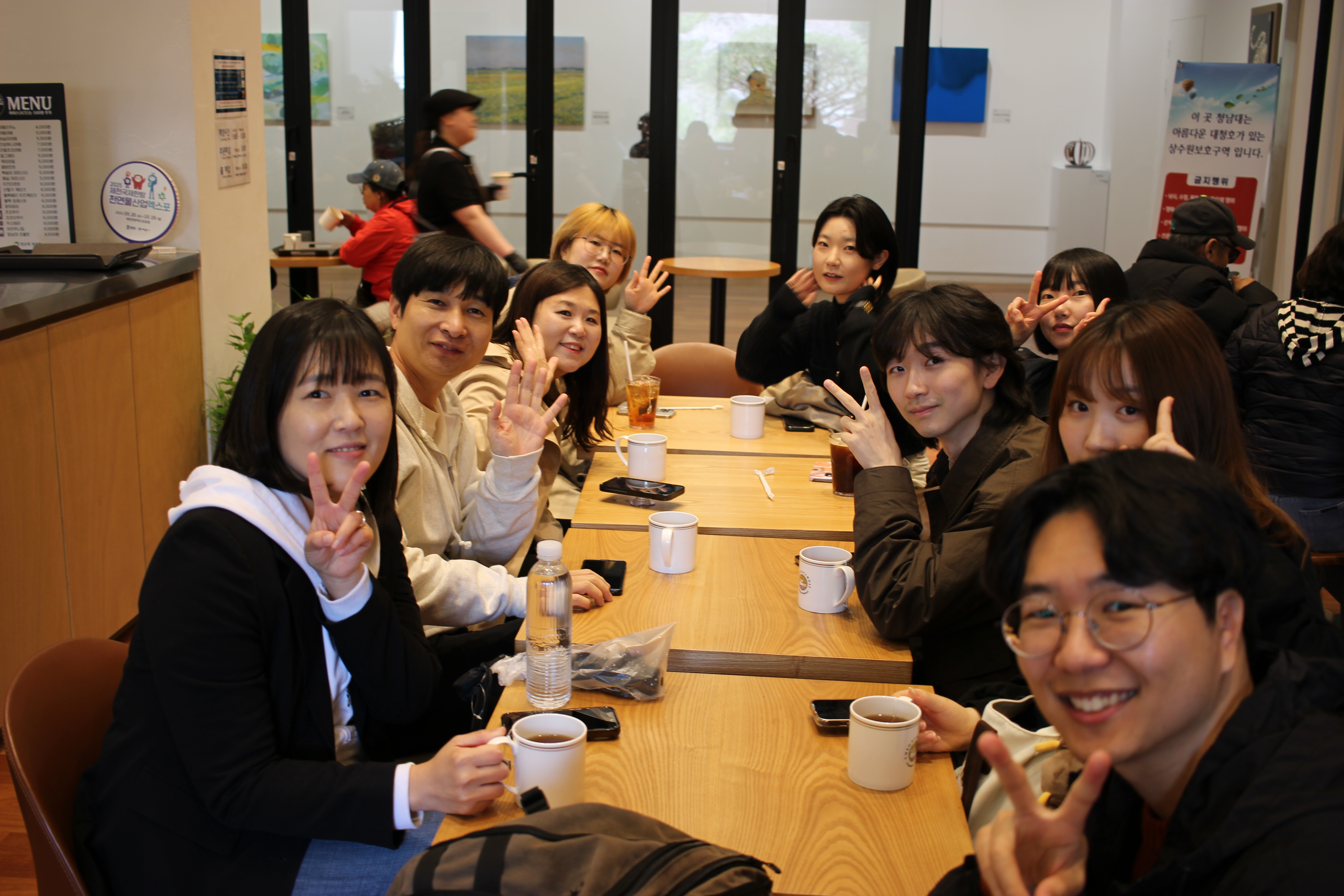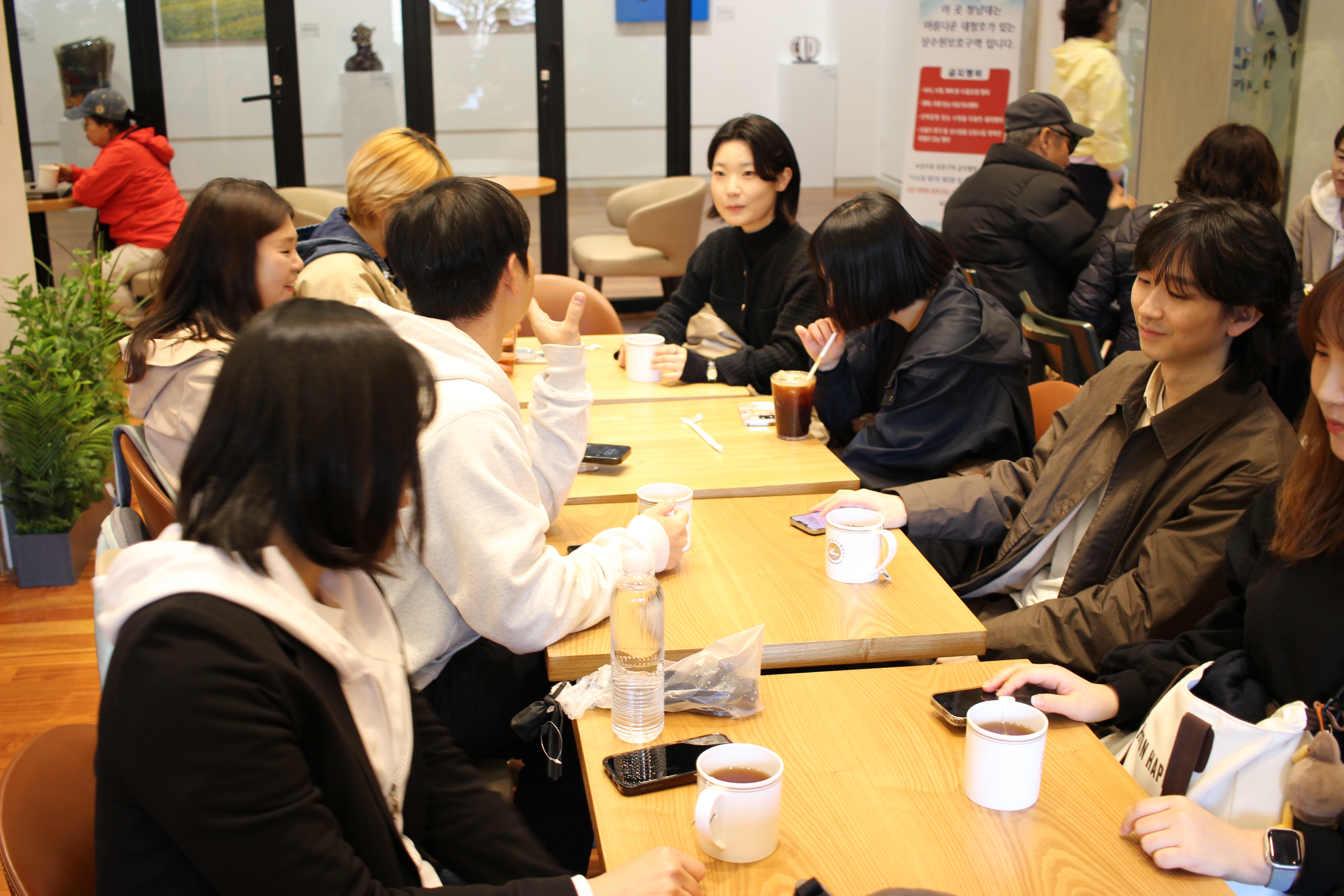 식사 후엔 대청호가 내려다보이는 ‘더 대청’ 카페에서 티타임을 가졌습니다. 넓은 창 너머로 내리는 비를 바라보며, 커피와 차를 나누고 각자의 생각과 고민을 공유하는 시간. 자연스럽게 대화는 운영 방향에 대한 아이디어와 향후 계획으로 이어졌습니다. 휴식과 회의가 잘 어우러진, 진정한 ‘워크숍’다운 순간이었죠.