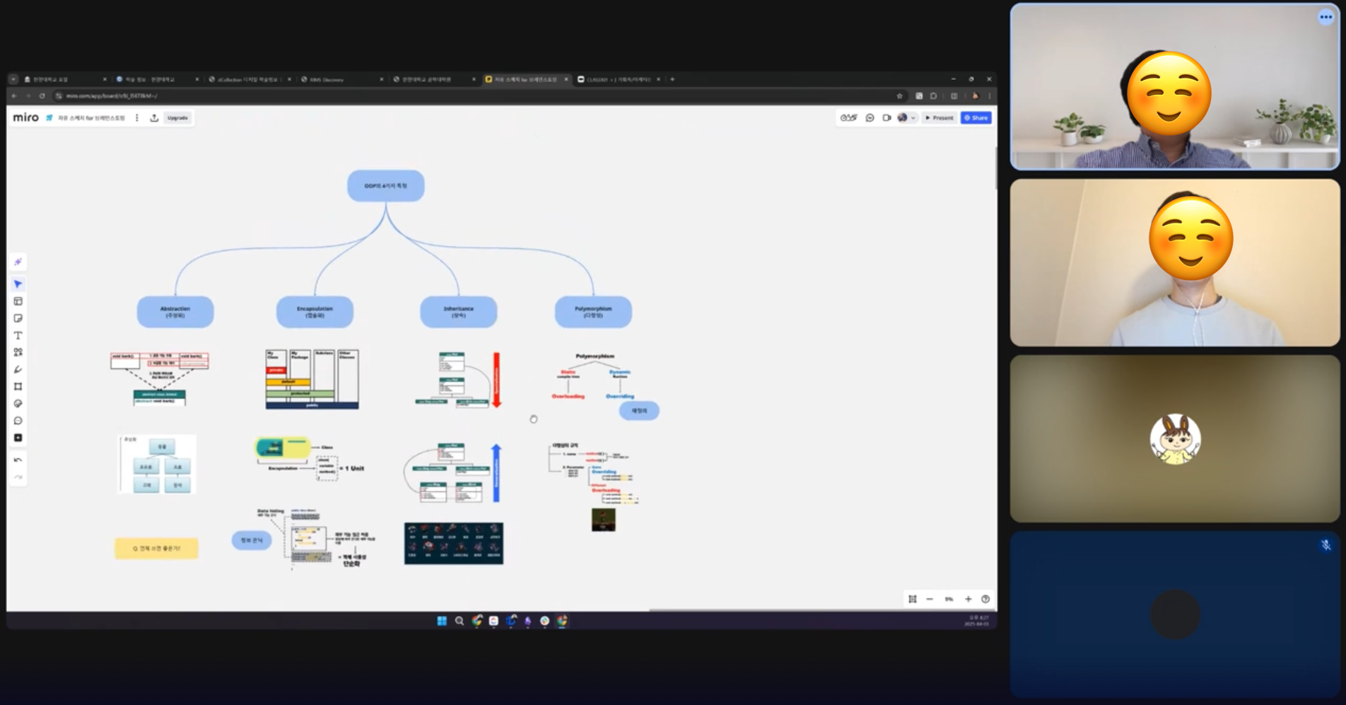 4주차에는 실무에서 유용하게 사용할 수 있는 디자인 패턴들을 중심으로 객체지향 설계의 핵심인 의존성 관리에 논의했습니다. 특히 템플릿 메서드 패턴과 전략 패턴의 차이를 중심으로, 상속과 합성이 객체 설계에 미치는 영향을 비교 분석했습니다. 템플릿 메서드 패턴은 자식 클래스의 형을 통해 조합을 고정하므로 구조가 단순하지만, 조합이 많아질수록 형이 무한히 늘어나는 조합 폭발 문제가 발생합니다. 반면 전략 패턴은 런타임에 필요한 객체를 주입할 수 있어 유연하지만, 그만큼 의존 객체가 많아지는 의존성 폭발 문제가 발생한다는 한계가 있습니다. 이 밖에도 생성 패턴과 팩토리 등 다양한 디자인 패턴을 함께 살펴보았고, 이전에 작성했던 코드 중 디자인 패턴을 적용해 리팩토링 할 수 있는 코드는 어떤 것이 있을까 함께 논의하였습니다. 이번 멘토링을 통해 객체지향 설계는 상황에 따라 변화에 대응할 수 있는 구조를 만드는 일임을 다시금 확인할 수 있었던 시간입니다.
